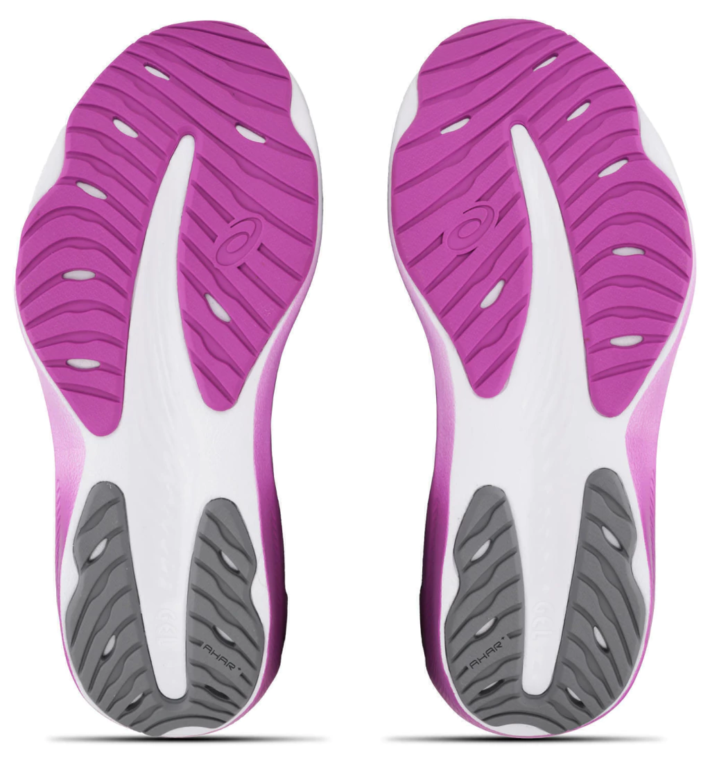 O solado é feito de borracha durável, projetada para oferecer boa aderência e tração em superfícies de asfalto e ambientes urbanos. Os sulcos flexíveis no solado também contribuem para uma movimentação mais natural e eficiente durante a corrida ou caminhada.
